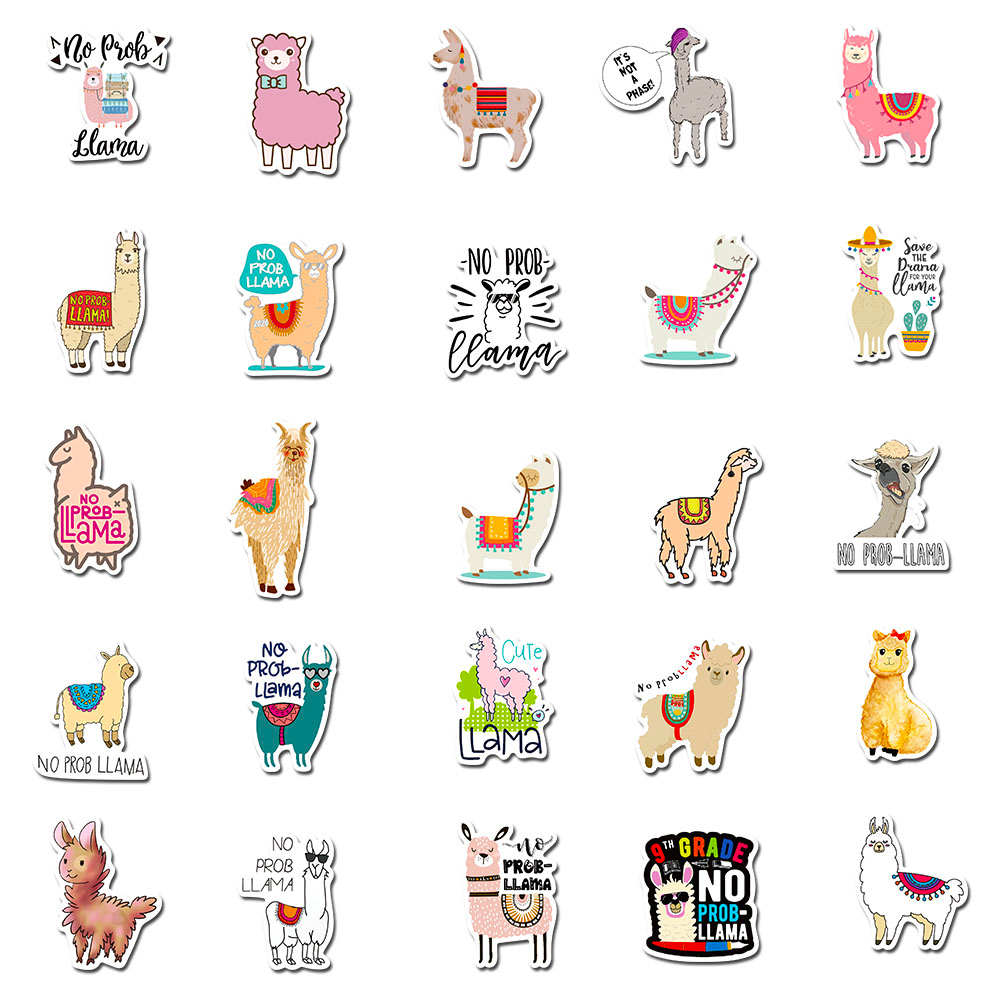 Alpaca Dieren Stickers – set 50 stuks – Laptop Stickers – Stickervellen